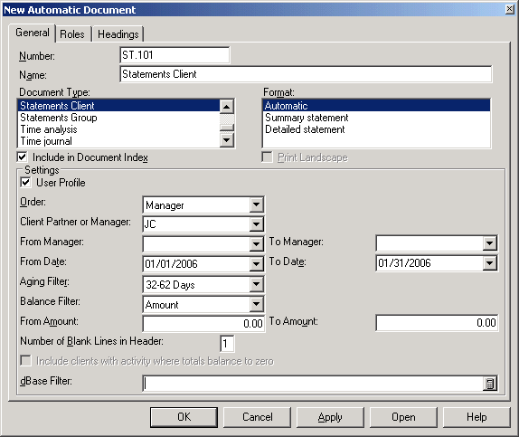 Numerous automatic documents to choose from.