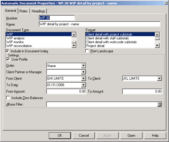 Many automatic work-in-process reports can be selected. This selection