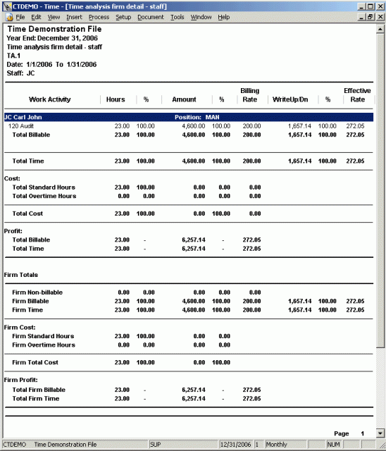 Many management reports are available, such as this time analysis report by selected staff